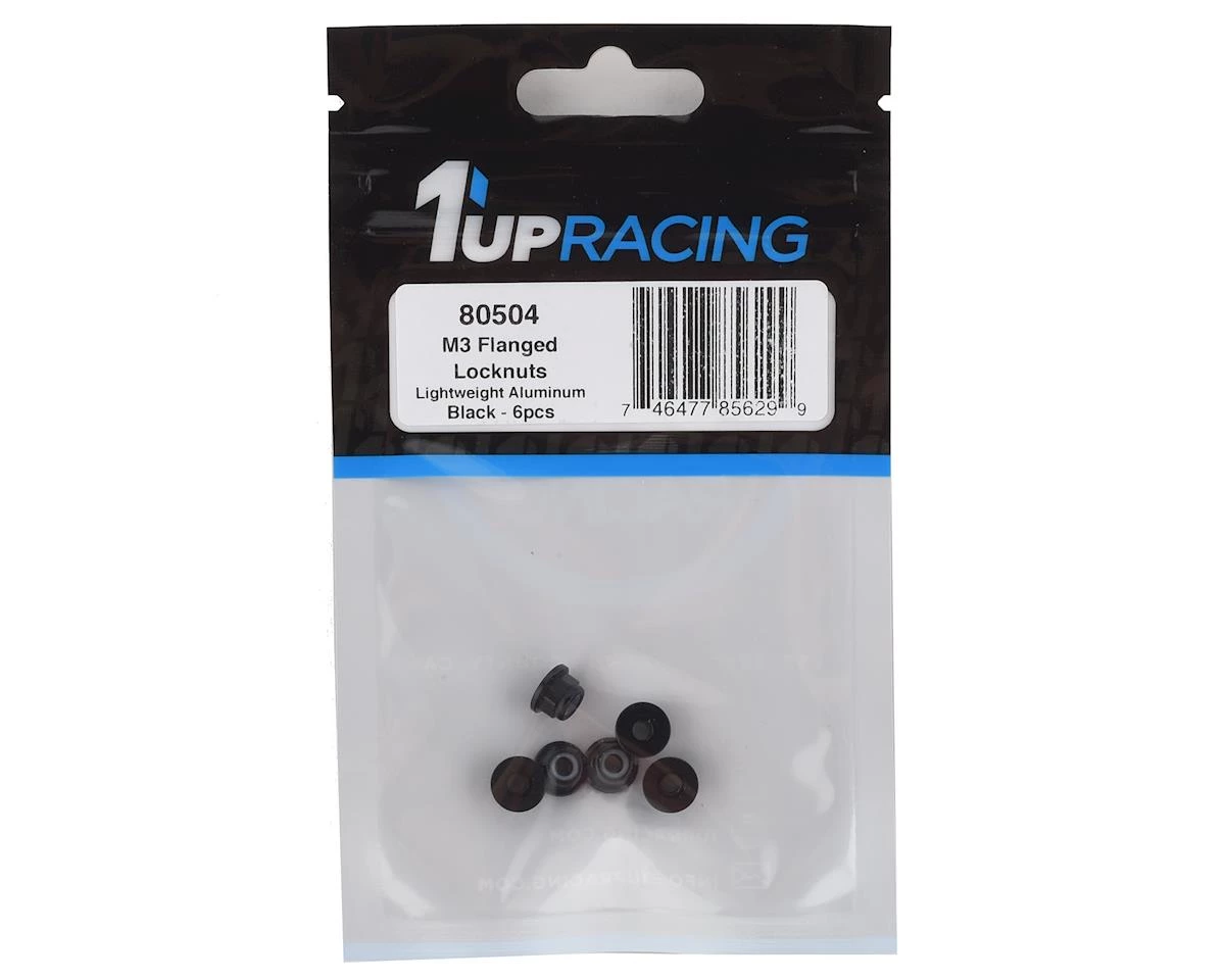 1UP Racing 3mm Aluminum Flanged Locknuts (Black) (6)