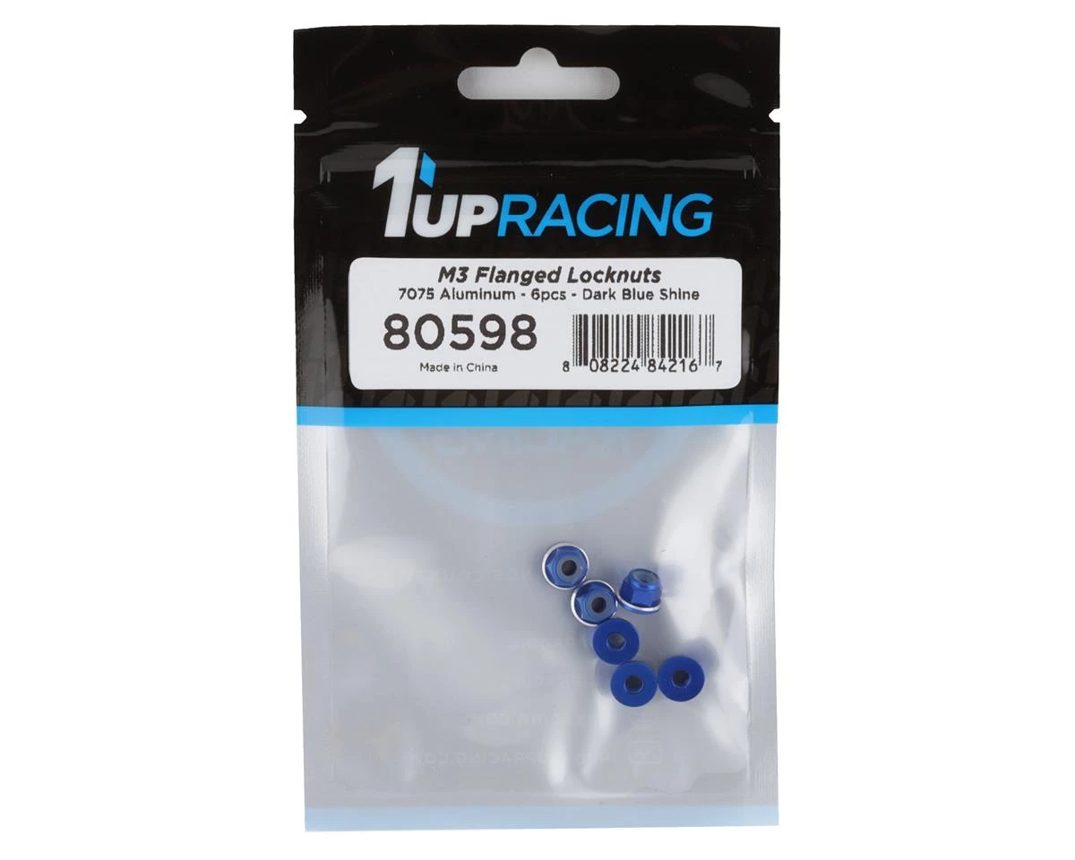 1UP Racing 3mm Aluminum Flanged Locknuts w/Chamfered Finish (Dark Blue) (6)