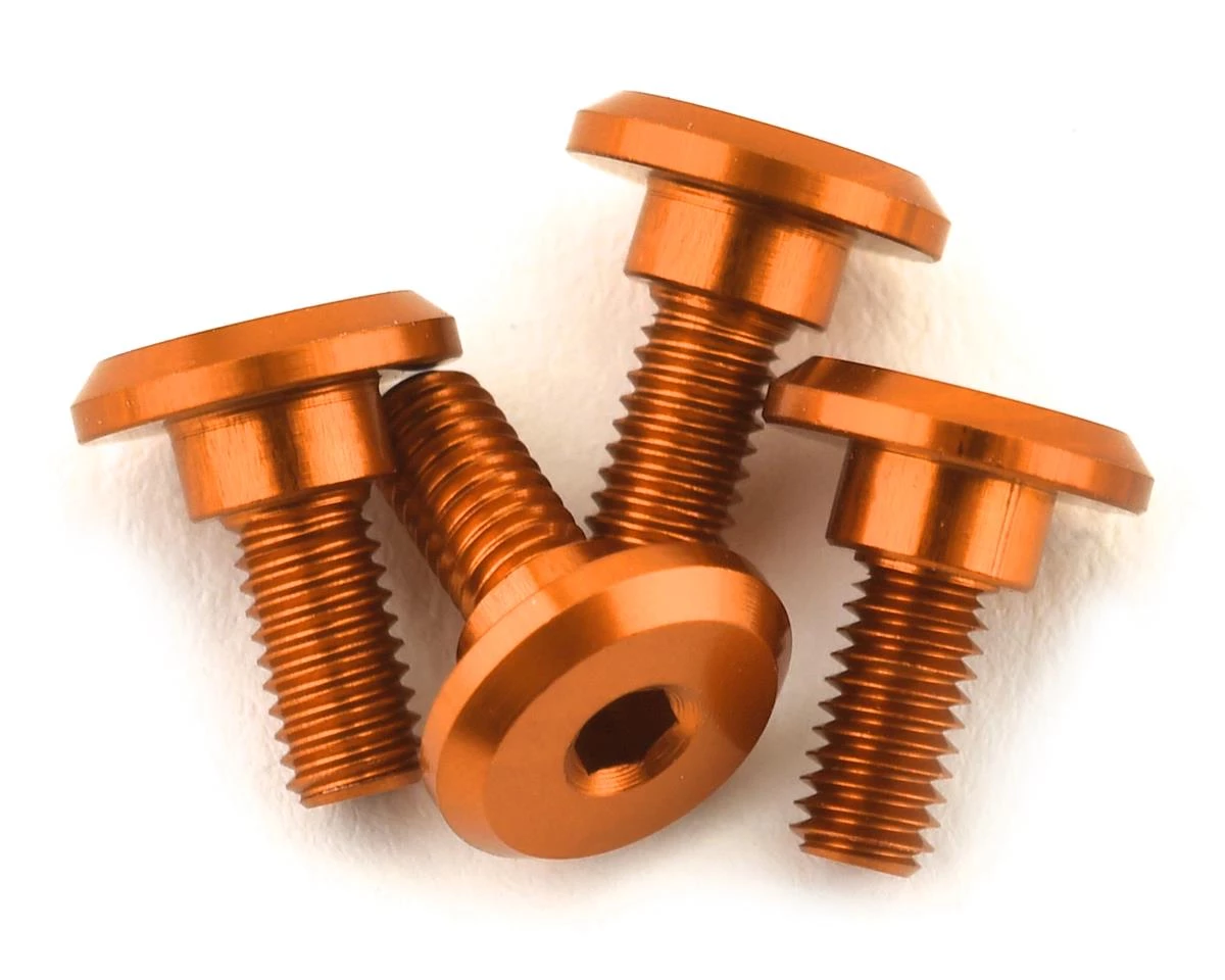 1UP Racing 3x6mm Aluminum Servo Mounting Screws with 4.2mm Neck are the ultimate servo mounting hardware upgrade. The days of taking a hit on the track and having the servo shift are over! Keep the servo in it’s place with 1Up Racing’s servo mounting screws. Precision machined from ultra-strong U.S. 7075-T6 alloy and finished with orange anodizing for added strength and style.