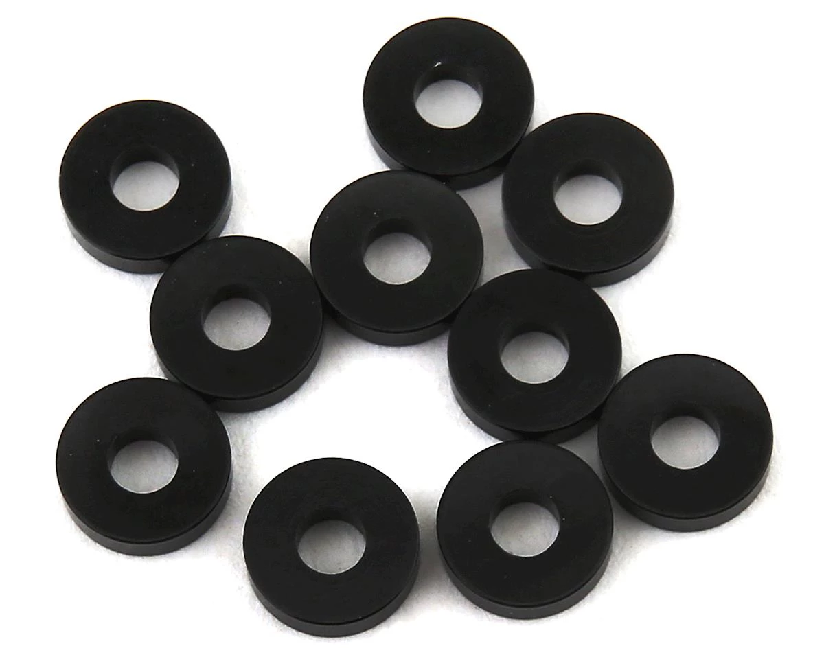 The 1UP Racing 3x8x2mm Precision Aluminum Shims are CNC-Machined to strict tolerances for accurate shim adjustments. These shims are then anodized glossy black for a clean finish. Use these with 3mm screws or ball studs, or with any 3mm pins to ensure accurate settings every time! Package includes ten optional shims.