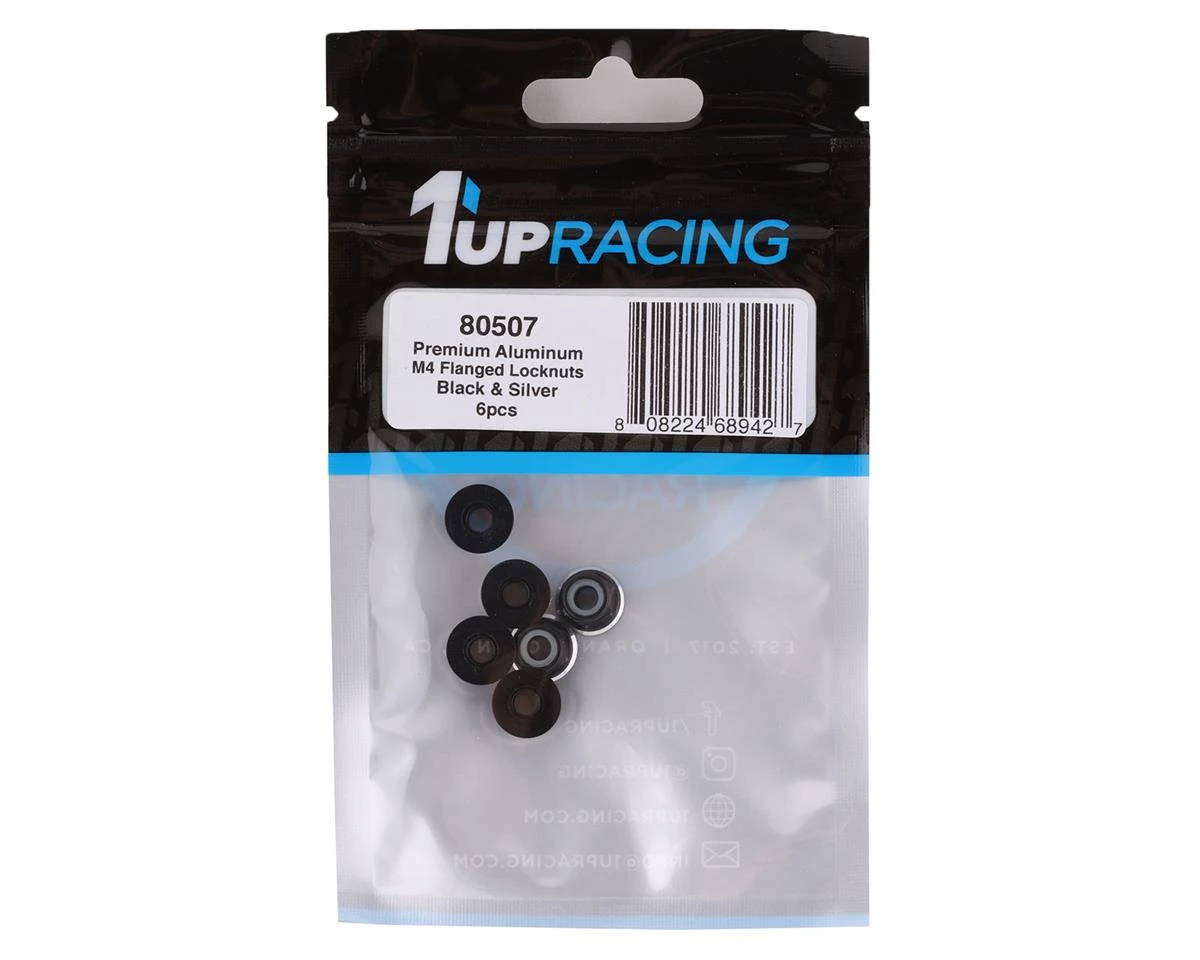 1UP Racing 4mm Flanged Aluminum Locknuts offer enthusiasts a high quality nut option with a clean chamfered edge. Package includes six locknuts.