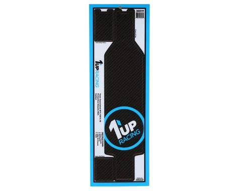 The 1UP Racing B74.1/B74.1D Chassis Protector Sheet features a trick carbon fiber appearance with bold 1up Racing logo for an unmistakable look! Heavy duty vinyl with extremely tacky adhesive was carefully selected to ensure long life, and extra nose and tail sections are included for easy replacement of the highest-wear areas.