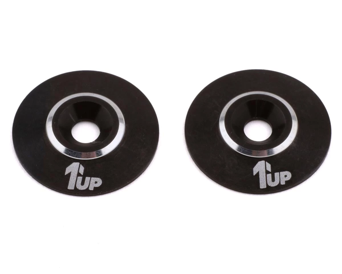 1UP LowPro UltraLite Wing Washers give your ride an unmistakable look. Designed for off-road use, the LowPro UltraLite Wing Washers feature a smooth, low-profile design without any cutouts that pick up dirt during less-than-perfect landings. The oversized 16mm outer diameter reduces wing flex, aiding in rear-end stability. These washers are precision machined from 7076-T6 Aluminum and finished with dark black anodizing and mirror-like chamfers for exceptional looks and durability!
