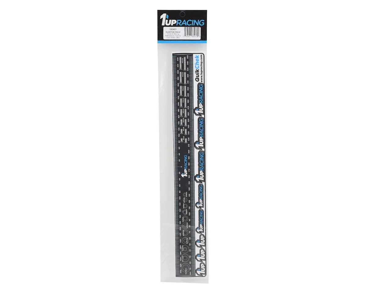 Apply the 1UP Racing QuikChek decal to your pit board or desk for Quik reference of wheelbase, popular bearing and screw sizes, plus a ruler!