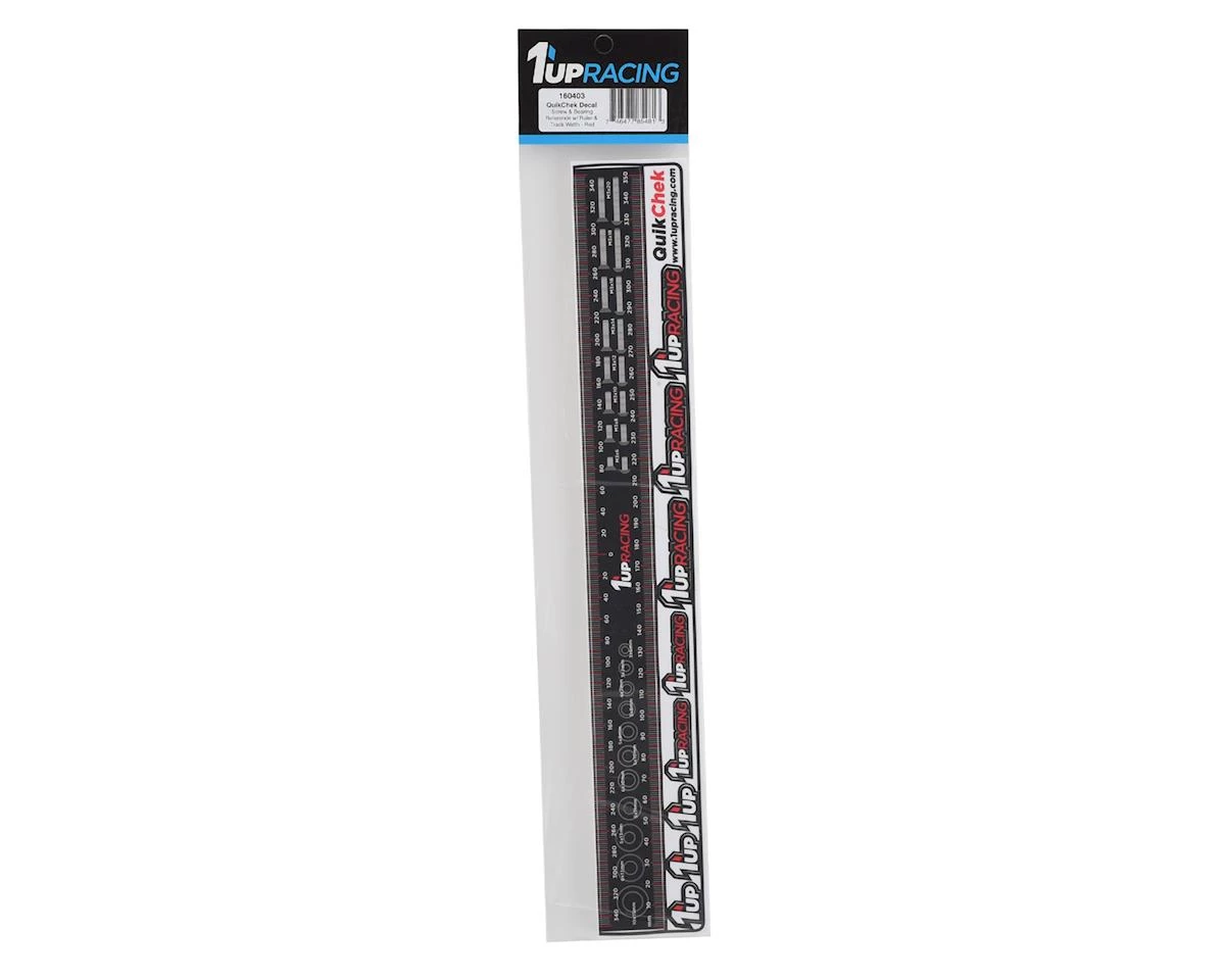 Apply the 1up Racing QuikChek decal to your pit board or desk for Quik reference of wheelbase, popular bearing and screw sizes, and a ruler!