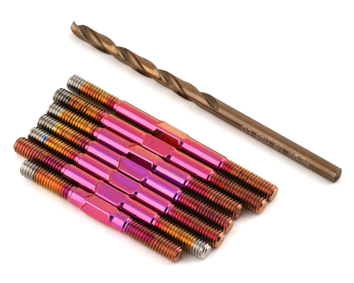 Anodizing titanium is a completely different process from anodizing aluminum. While aluminum uses dyes to provide color, titanium achieves it’s colors at different voltages. 1UP Racing anodizes their titanium in large batches to create closely matching kits. But there still may be some color shifting as you view the turnbuckles from different angles. This is part of what makes anodized titanium so beautiful!
