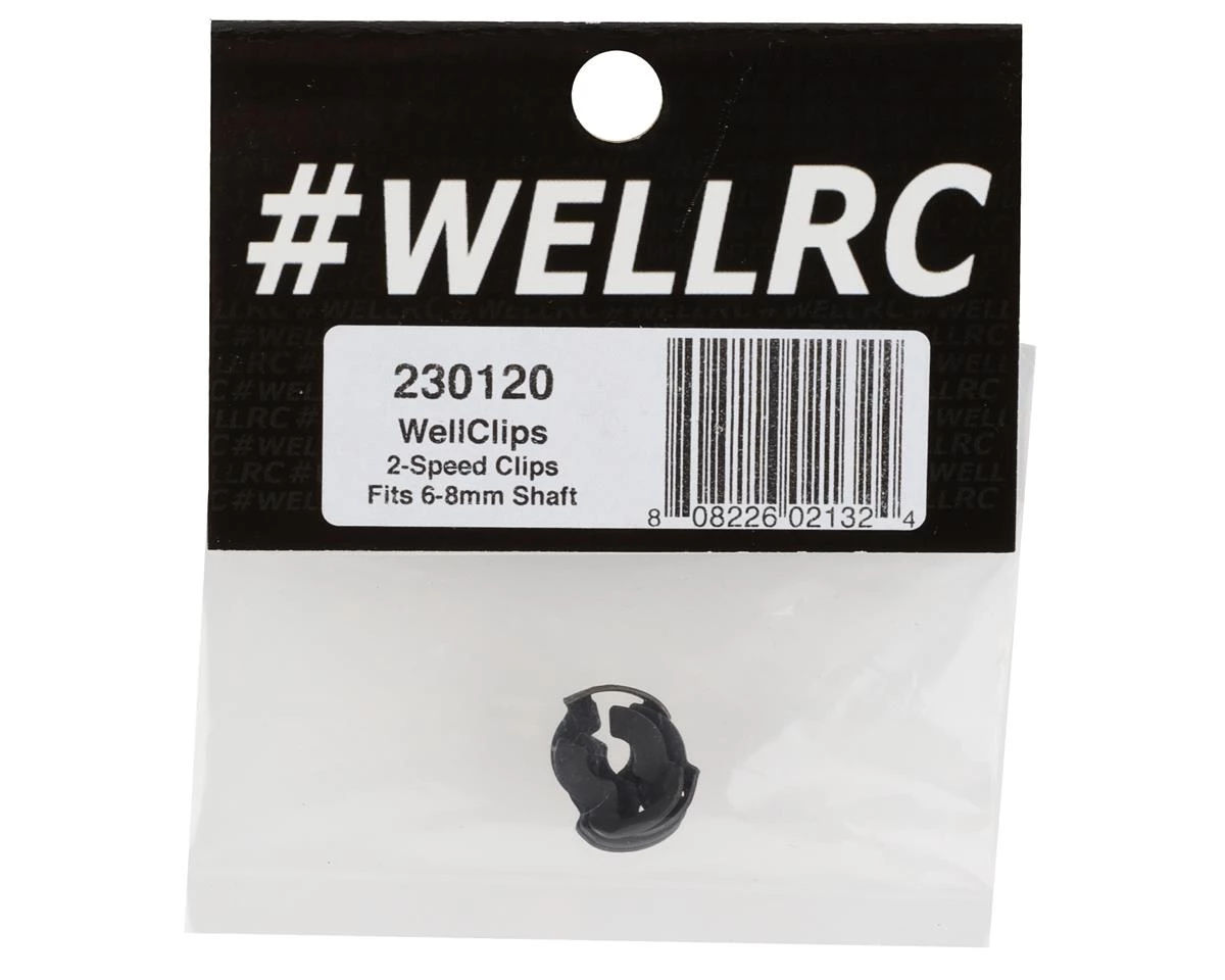 1UP Racing WellRC 2 Speed Quick Clips. These speed clips are a great option to quickly service your 2 speed clutch in your 1/10 or 1/8 scale nitro buggy. Package includes five quick clips.