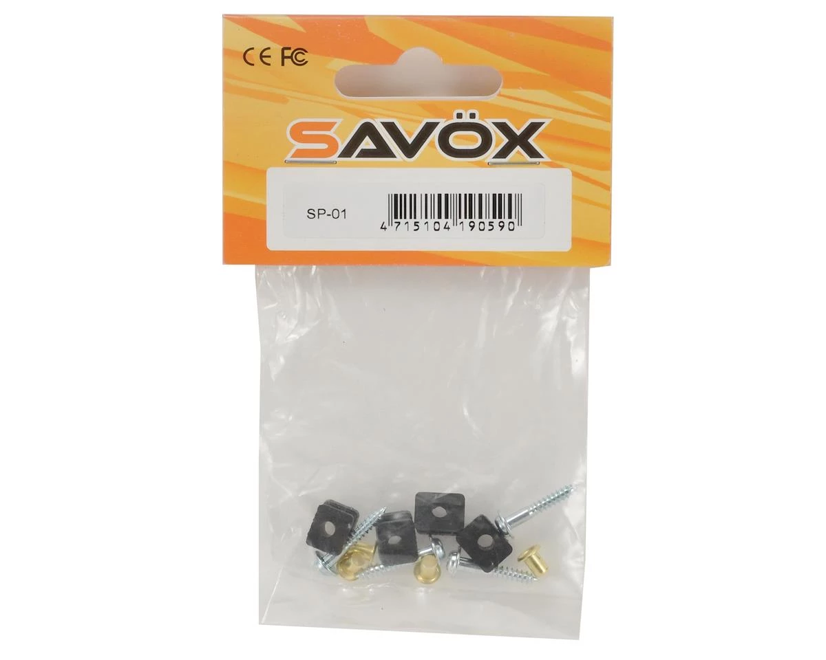 This is a replacement Savox SP01 Standard Size Servo Mount Grommet Set. This set also includes replacement mounting hardware.